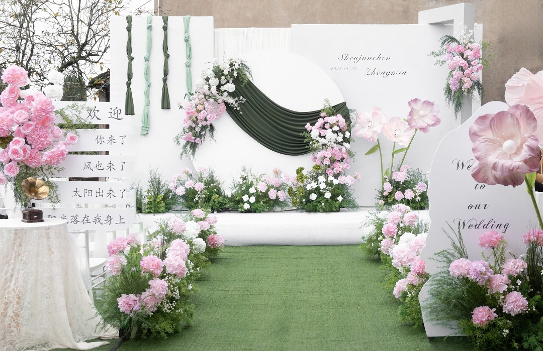 1、【依恋】主题套系+主持+摄像+早妆+婚车主副车装饰+手花+胸花+婚纱礼服,享受全包价