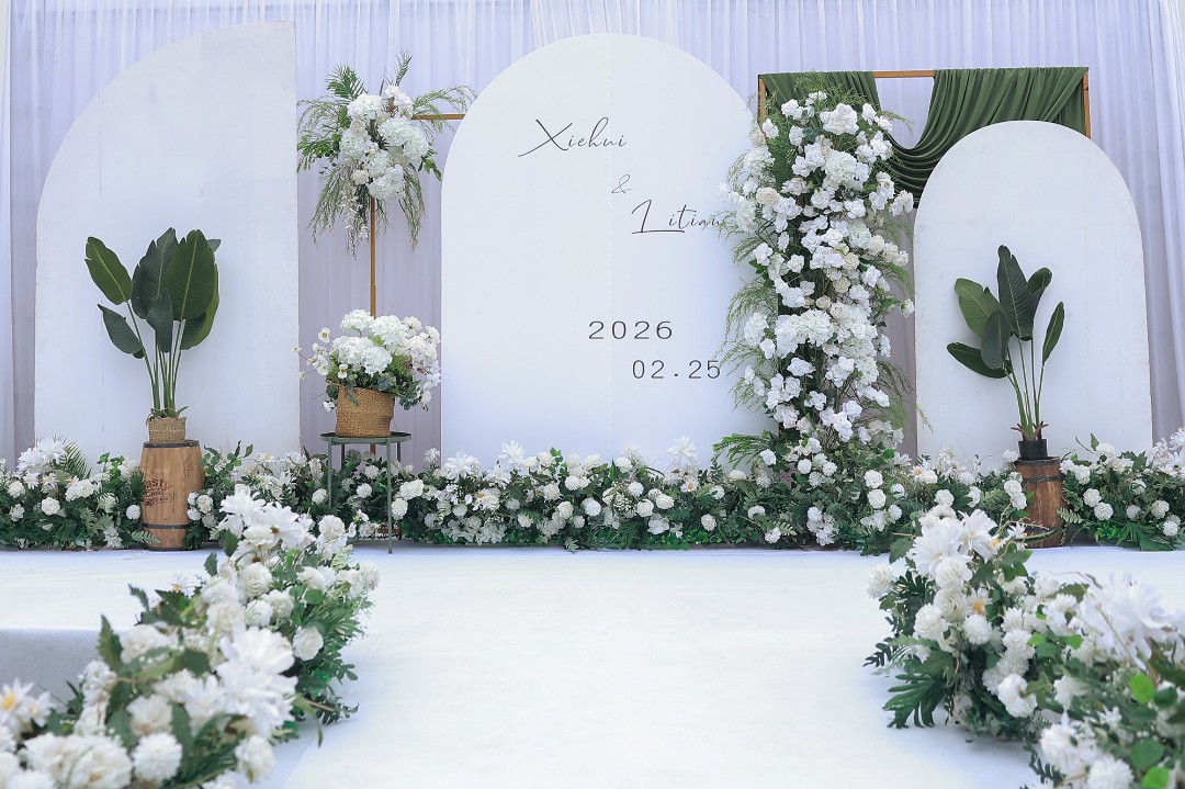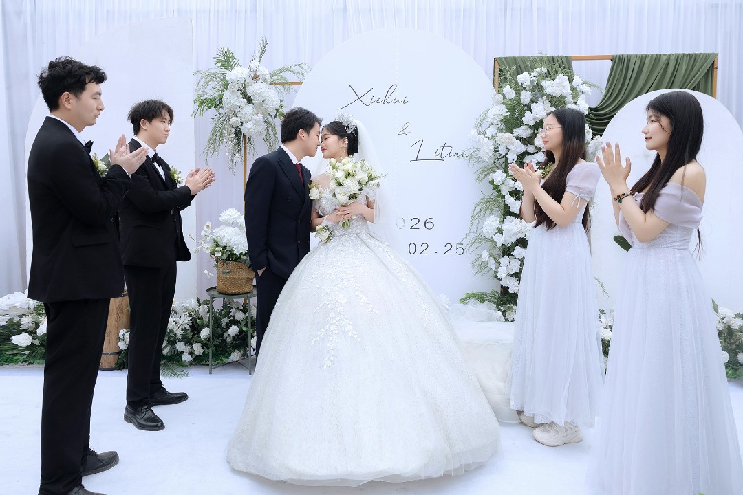 1、【依恋】主题套系+主持+摄像+早妆+婚车主副车装饰+手花+胸花+婚纱礼服,享受全包价