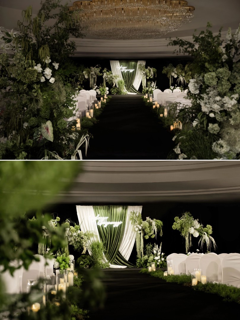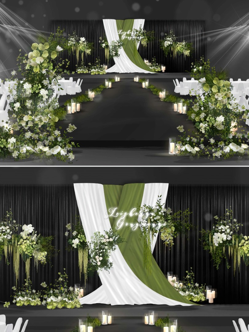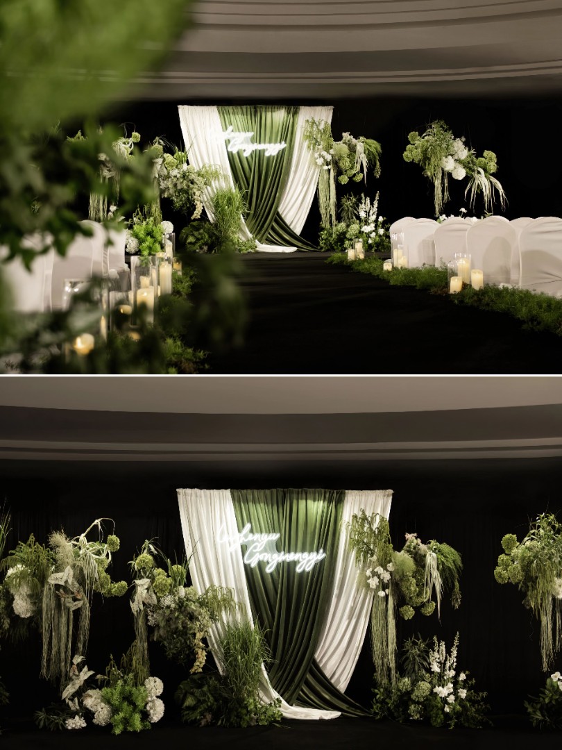 白绿色自然布幔