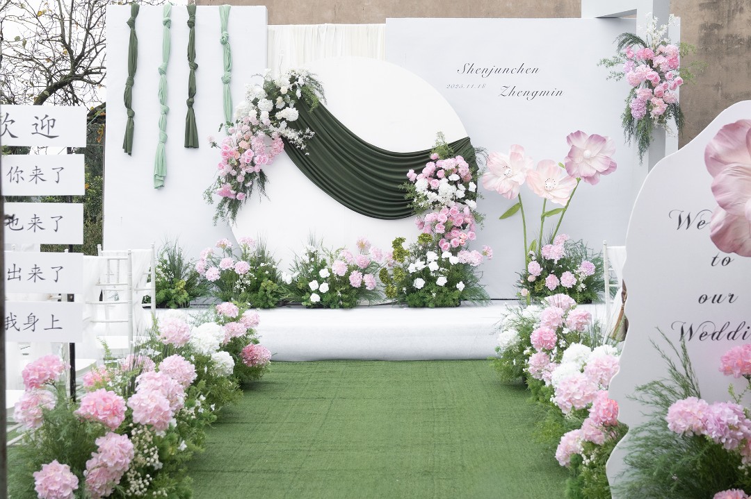 1、【依恋】主题套系+主持+摄像+早妆+婚车主副车装饰+手花+胸花+婚纱礼服,享受全包价