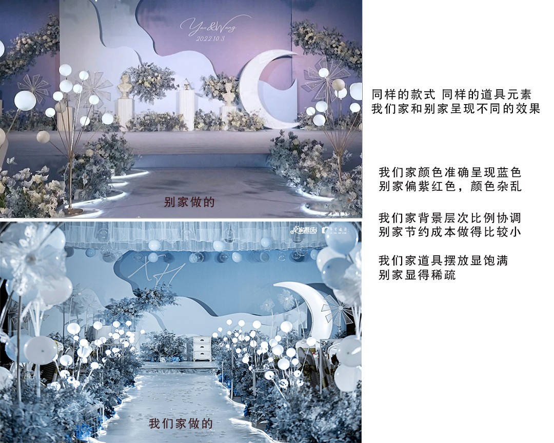 针对选择现有方案的,我们打造了各种风格的主题婚礼,并且不断更新设计,因展示图片就是我们做过的案例,所以能保证完成效果;