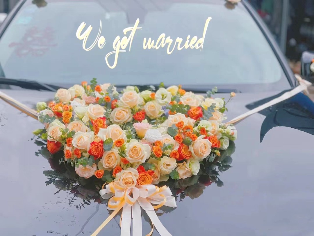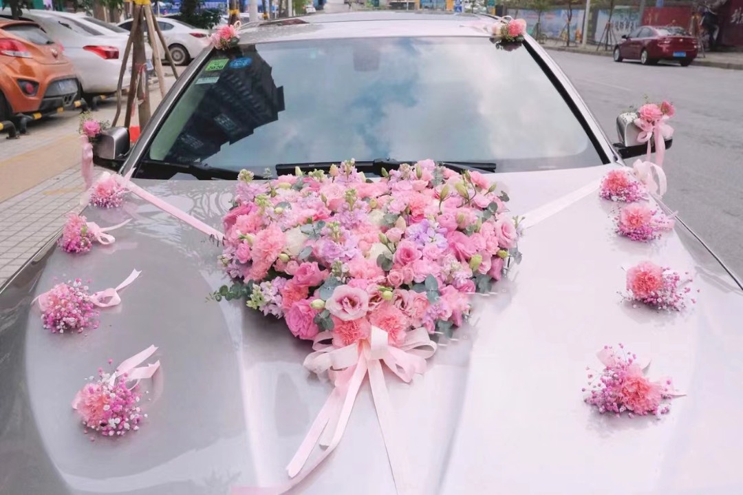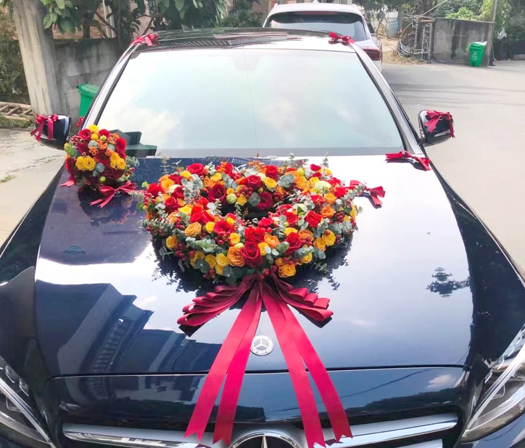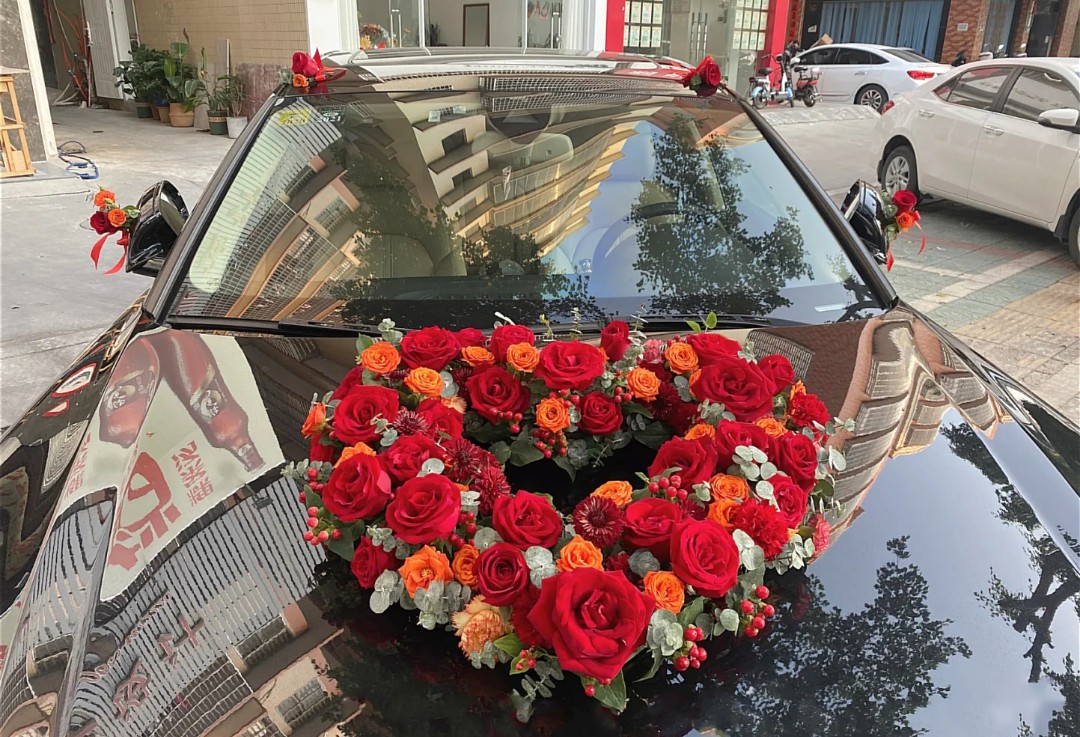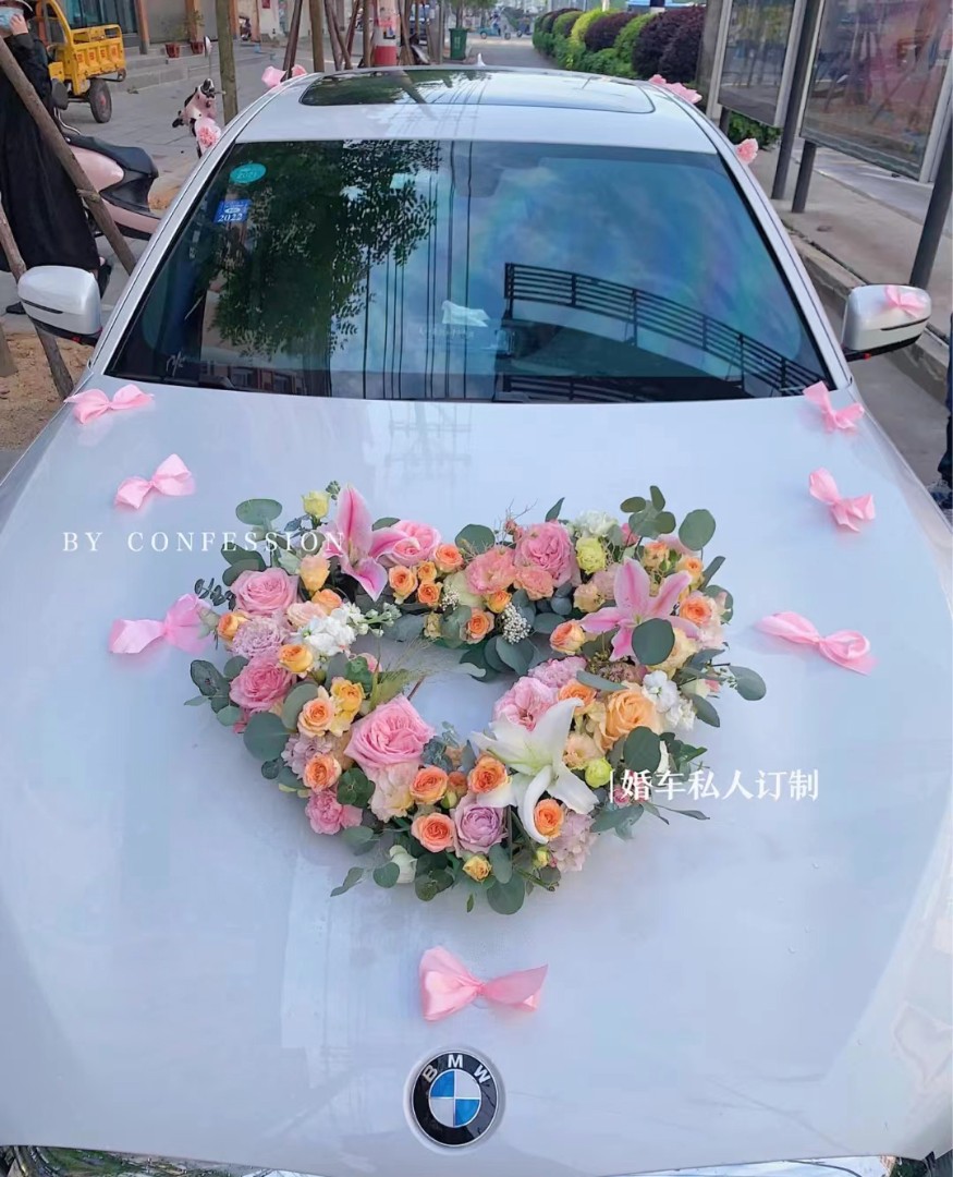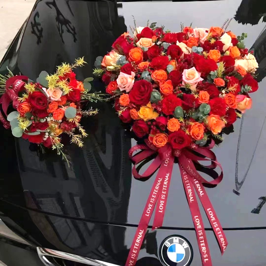 主婚车鲜花装饰(心型造型 高级版花量更多)