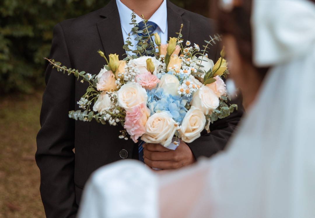 1、【依恋】主题套系+主持+摄像+早妆+婚车主副车装饰+手花+胸花+婚纱礼服,享受全包价