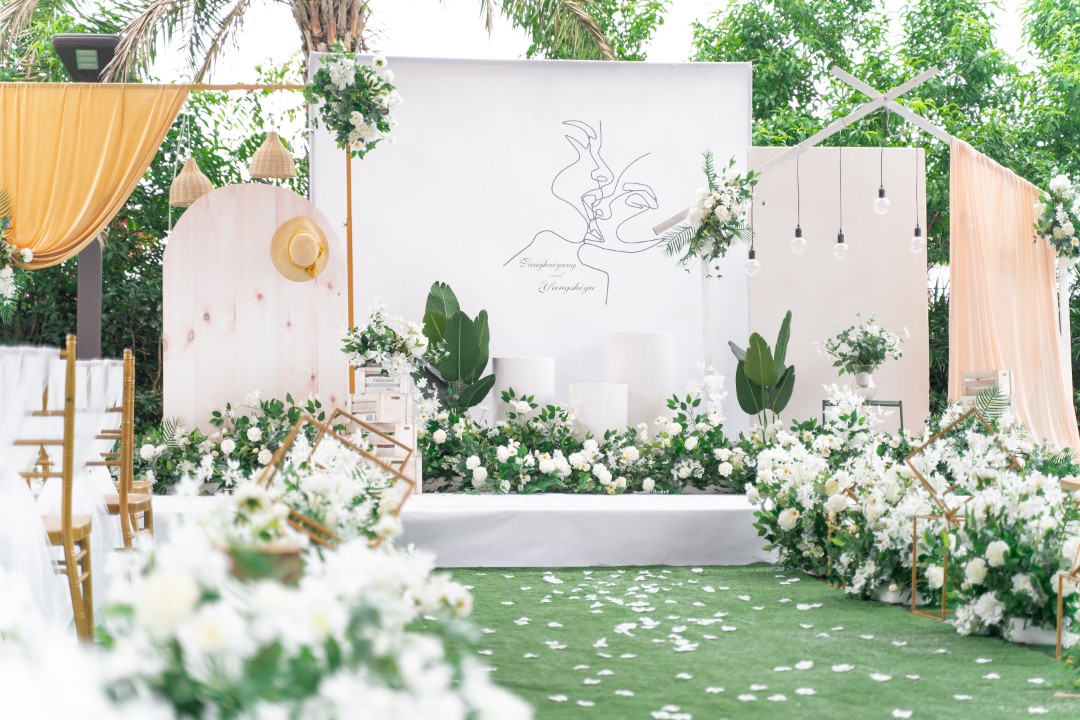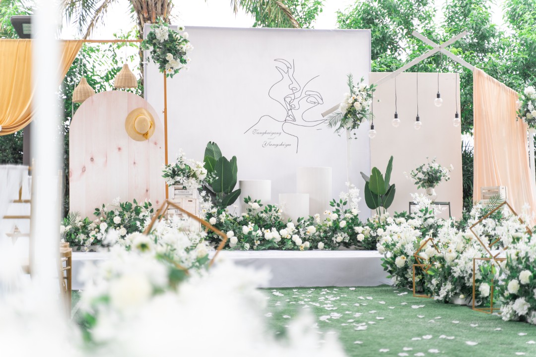 1、【依恋】主题套系+主持+摄像+早妆+婚车主副车装饰+手花+胸花+婚纱礼服,享受全包价
