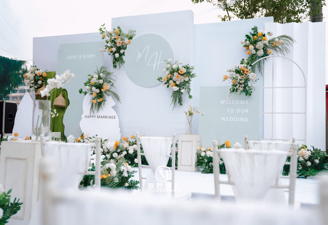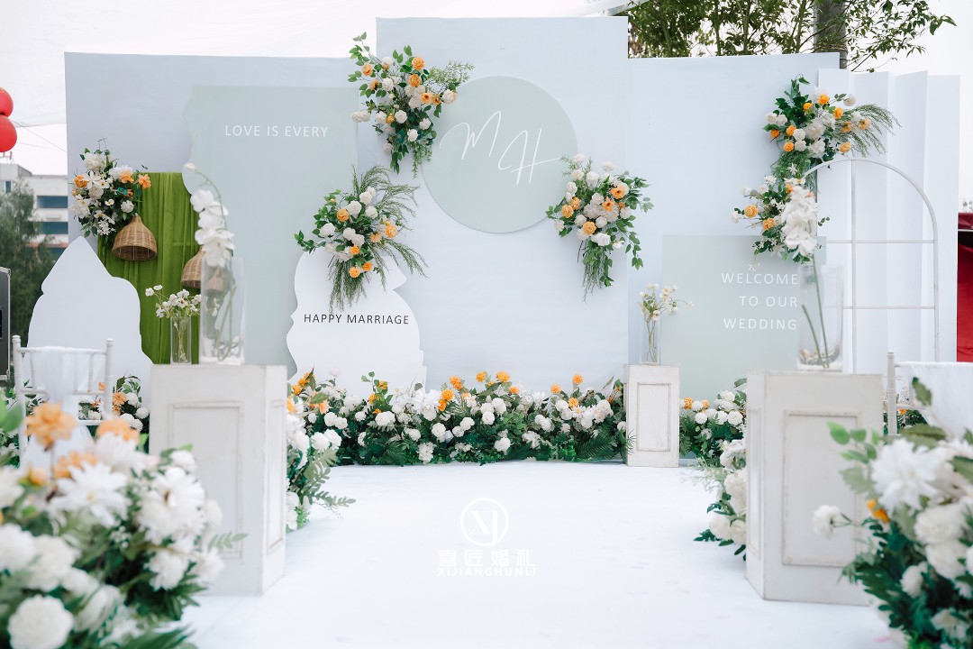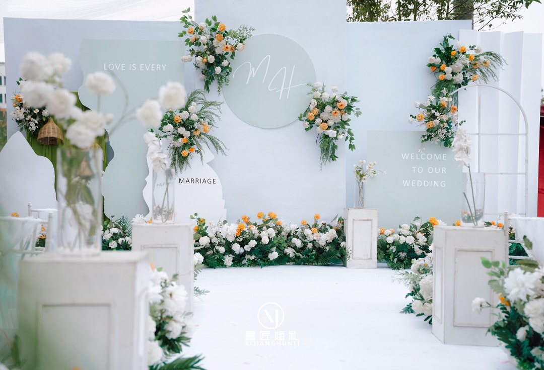 1、【依恋】主题套系+主持+摄像+早妆+婚车主副车装饰+手花+胸花+婚纱礼服,享受全包价